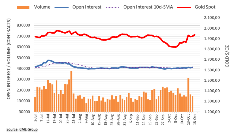 金价逆转了周一的下跌并于周二小幅上涨至1930美元区域。金价上涨之际未平仓合约增加,打𫔭了短期内金价继续反弹的大门。上涨方面,下一个阻力在1950美元/盎司附近。