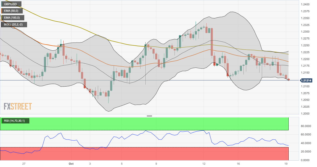 - 该货币对维持在 50 小时和 100 小时 EMA 下方;RSI 位于 50 下方的看跌区域。