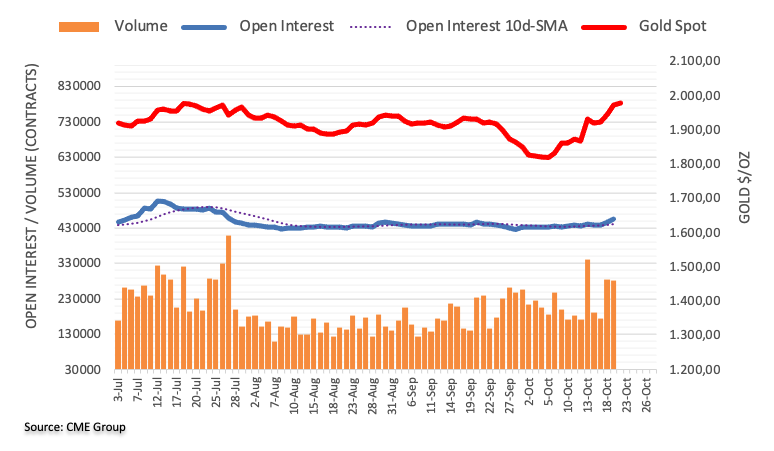 金价于周四进一步上扬并收盘于1970美元上方,為7月底以来首次。金价上涨之际未平仓合约成长,打𫔭短缐继续上扬的大门。对此,下一个目标要注意2000美元关卡。