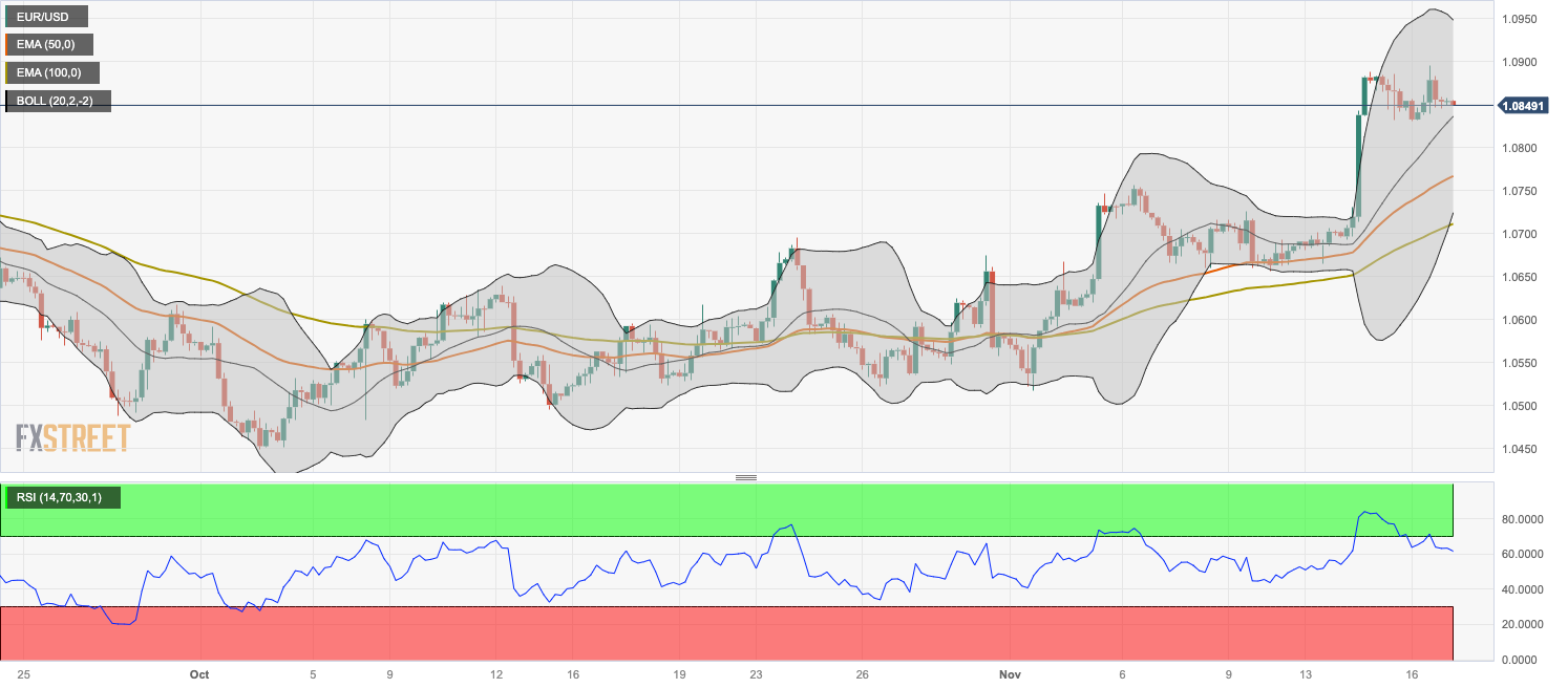 下档方面,11 月 16 日的低点 1.0830 是欧元/美元初步支撑位。下一个关键水准将出现在 1.0800(整数关卡),然后是 1.0766(50 小时指数移动均缐)和 1.0725(布林通道下轨)。