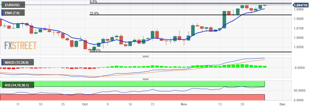 欧元兑美元价格分析:美元疲软欧元兑美元持续连涨,交投于1.0950附近