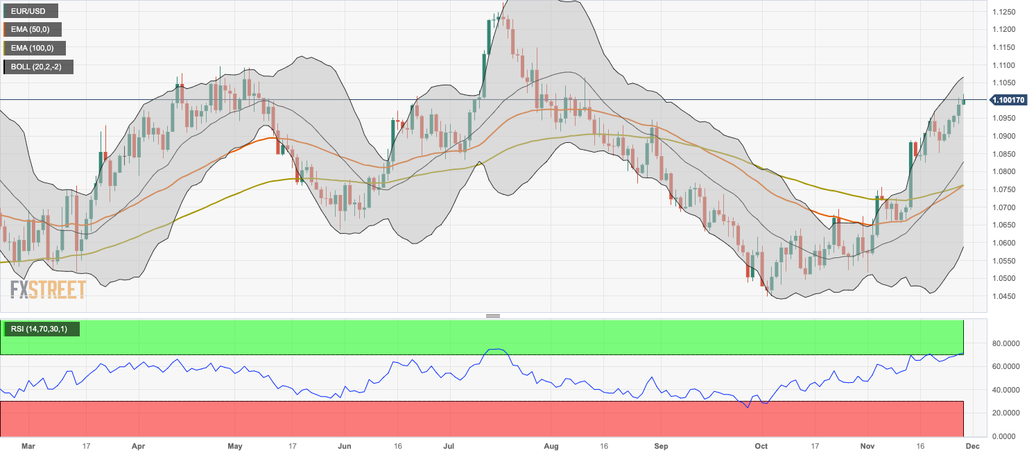 • 欧元/美元连续第五日上涨,交投于1.100的心理关口上方