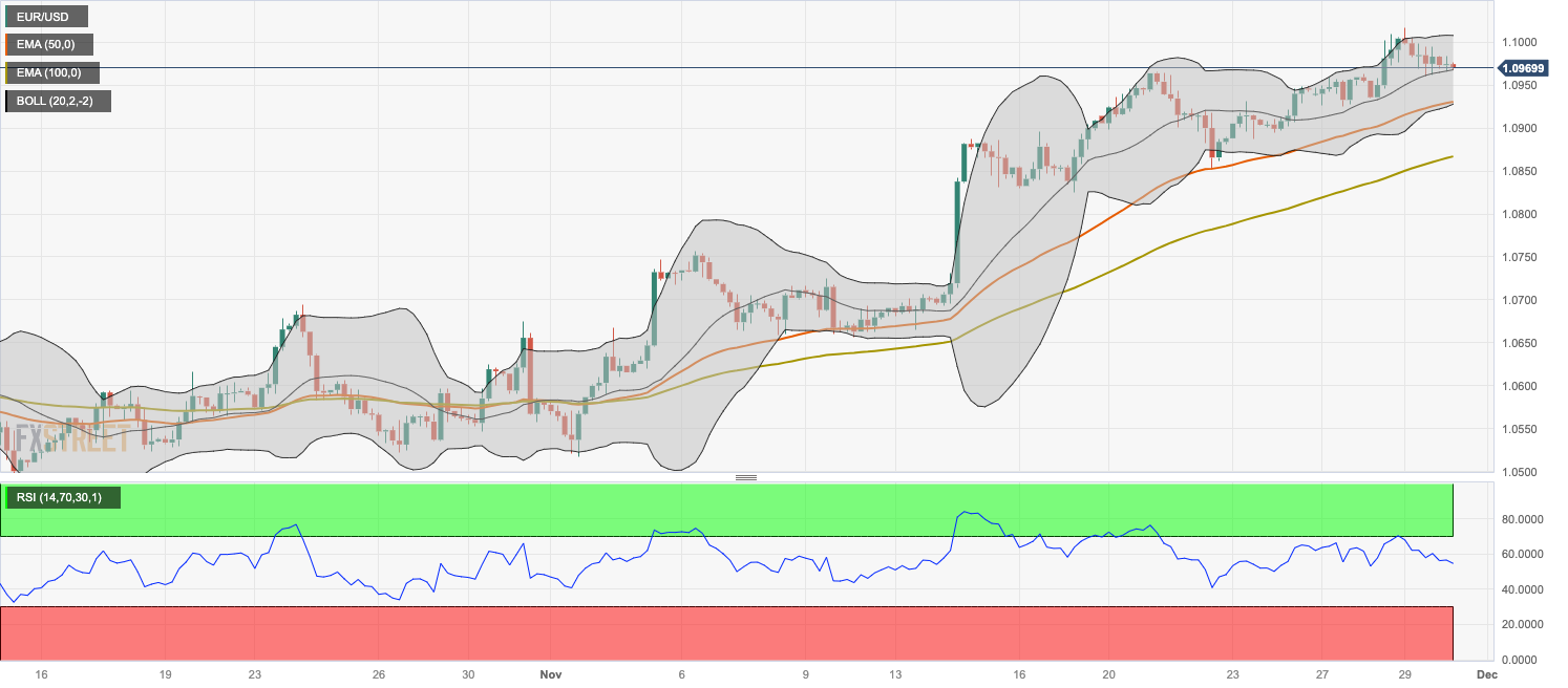 周四欧市早盘,欧元兑美元盘中小幅下跌。继欧元兑美元自近四个月高点1.1017回撤后,目前交投于1.0970附近。市场参与者在观望周四义大利、法国和欧元区的通膨数据。欧元区11 月消费者物价调和指数年率预期 3.9%,前值為 4.2%。