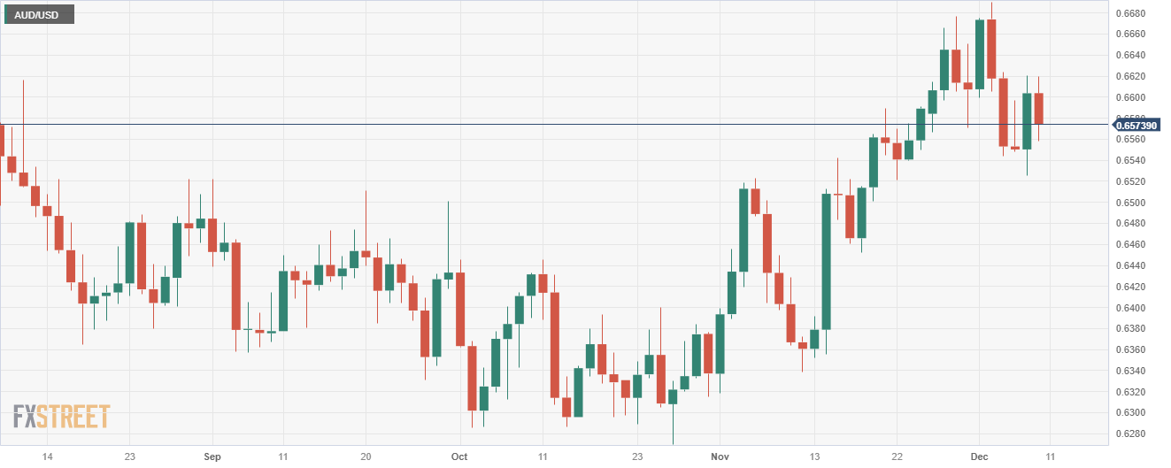 - 澳元/美元在 0.6580 水平附近震盪,跌幅為 0.25%。