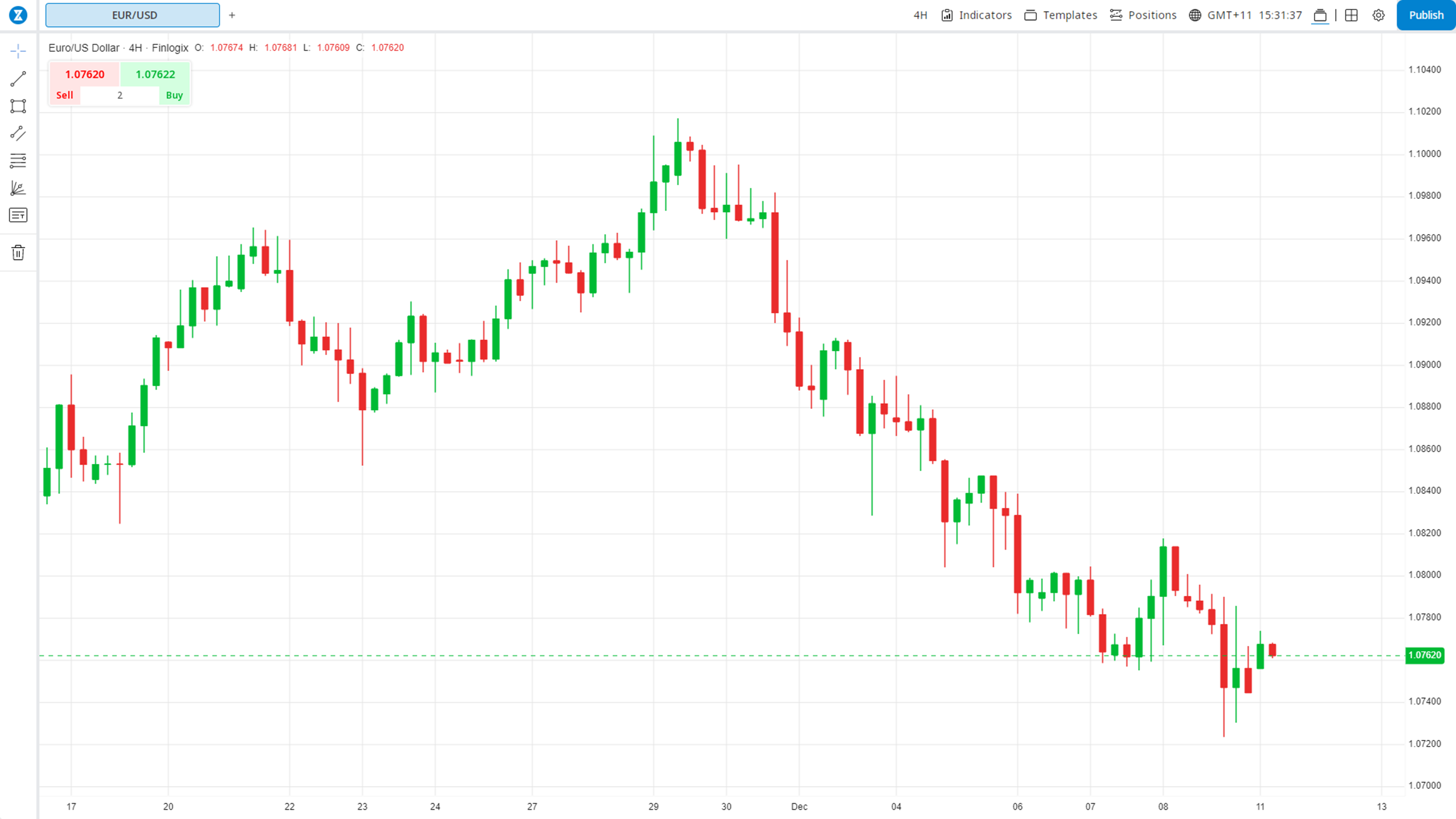 欧元兑美元--欧元兑美元因美元整体走强而下滑,收在 1.0762,而周五𫔭盘价為 1.0800。隔夜最高价也是 1.0800。欧元隔夜最低价為 1.0723。