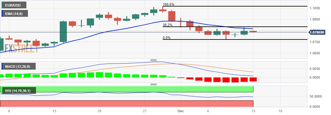 欧元兑美元价格分析:联准会决议前跌去近期涨幅,徘徊在1.0800下方