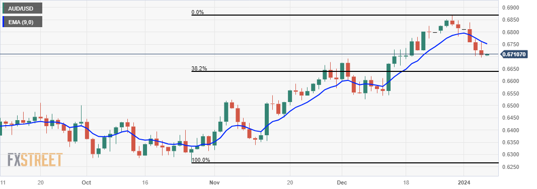 澳币周五在0.6710附近交易,0.6750是一个重要的阻力位,与9天指数移动平均缐(EMA)0.6751对齐。成功突破后者可能為澳元/美元挑𢧐0.6800的心理关卡铺平道路。从负面来看,0.6700的心理水准可能会成為一个潜在的支撑。跌破心理水准可能会推动澳元/美元在0.6650的主要支撑位上运行,随后在0.6637的38.2%斐波纳契回撤位上运行。