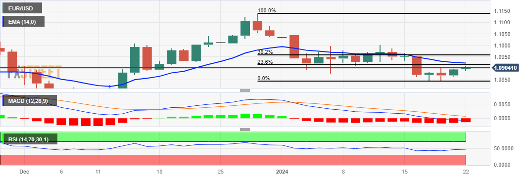 欧元兑美元价格分析:企稳于1.0900上方,然后為23.6%回档位