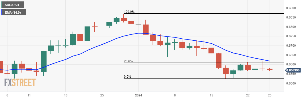 澳币在周四连续第二日下跌。在周三美国公布了积极的标普全球采购经理人指数(PMI)数据后,澳元/美元承压下行。乐观的数据可能会降低联准会(Fed)3月降息的可能性,促使澳元兑美元下跌。此外,根据 CME 的 FedWatch 工具,市场对联准会 3 月降息的押注目前已降至 40% 以下,与一个月前的 80% 左右相比大幅下降。