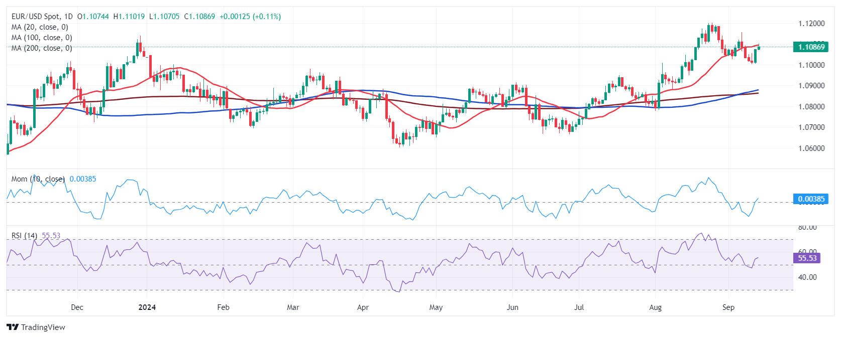 欧元/美元货币对日缐图显示,该货币对很难将涨势扩大到仍然看涨的 100 SMA 以外。与此同时,温和看涨的 100 SMA 在持平的 200 SMA 上方推进,位于 1.0890 水平附近。总体而言,移动均缐表明𧹒方占据主导地位。不过,技术指标反映的看涨信念有限。动量指标走高,但仍低于 100 缐,而相对强弱指数(RSI)在 55 附近盘整。