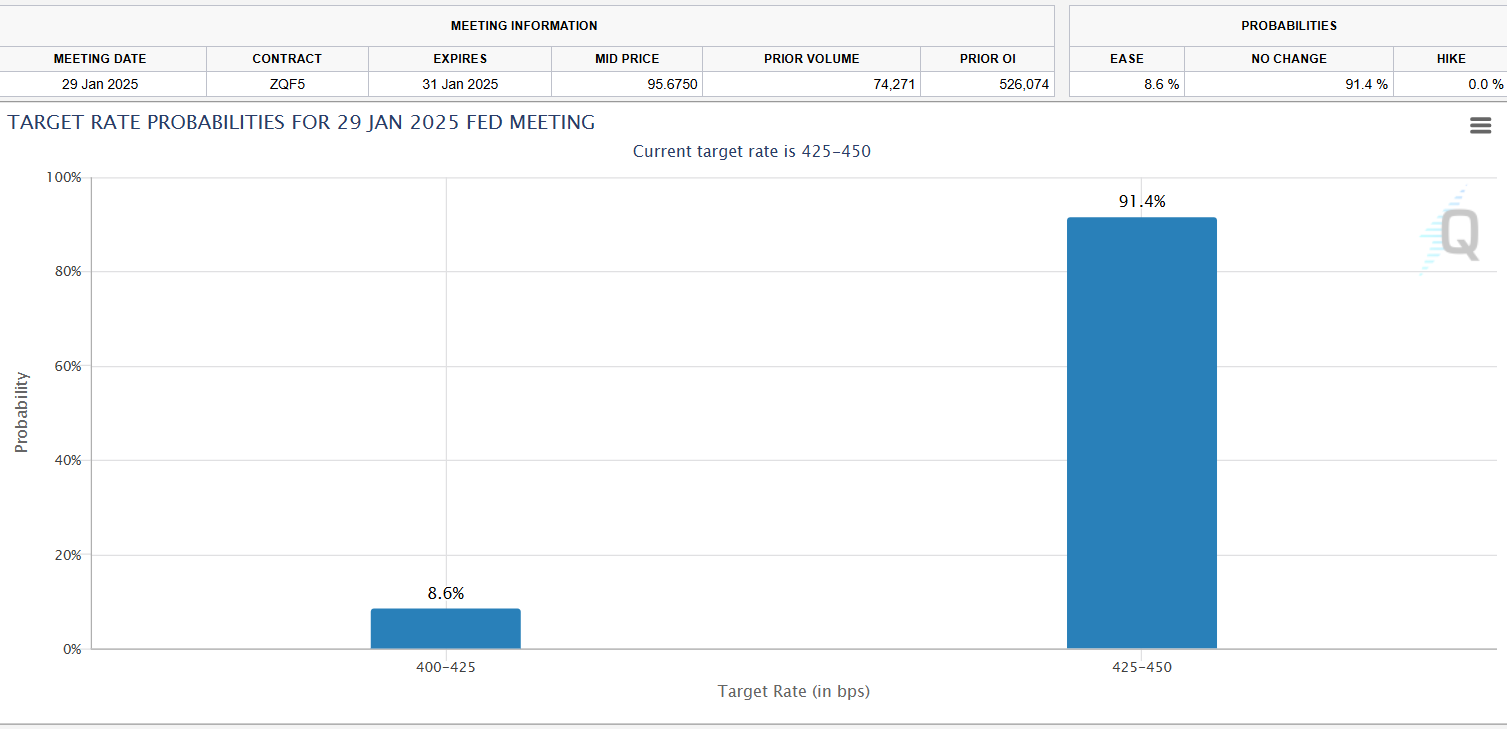 美联储 1 月议息会议的利率概率。来源:CMEGroup