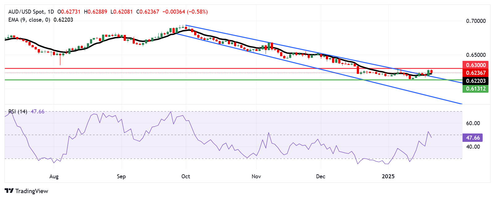 技术分析:澳元回落至 0.6250 以下,接近九日 EMA
