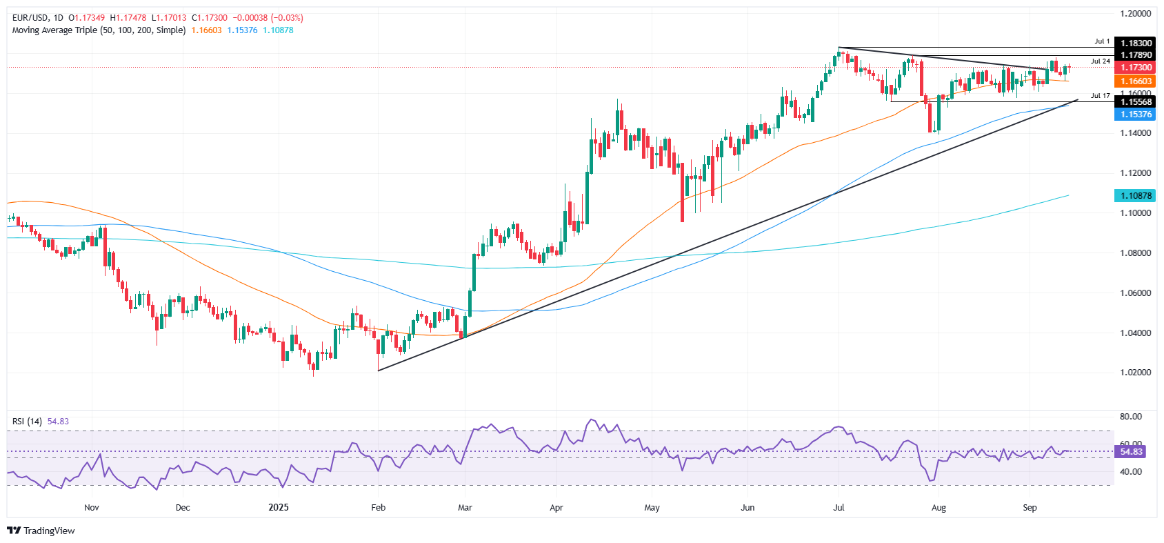 技术展望:欧元/美元在1.1730附近保持稳定