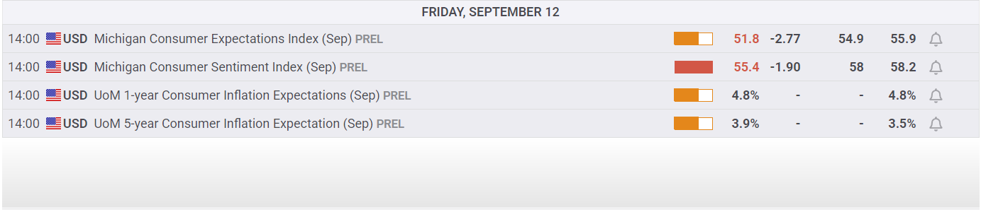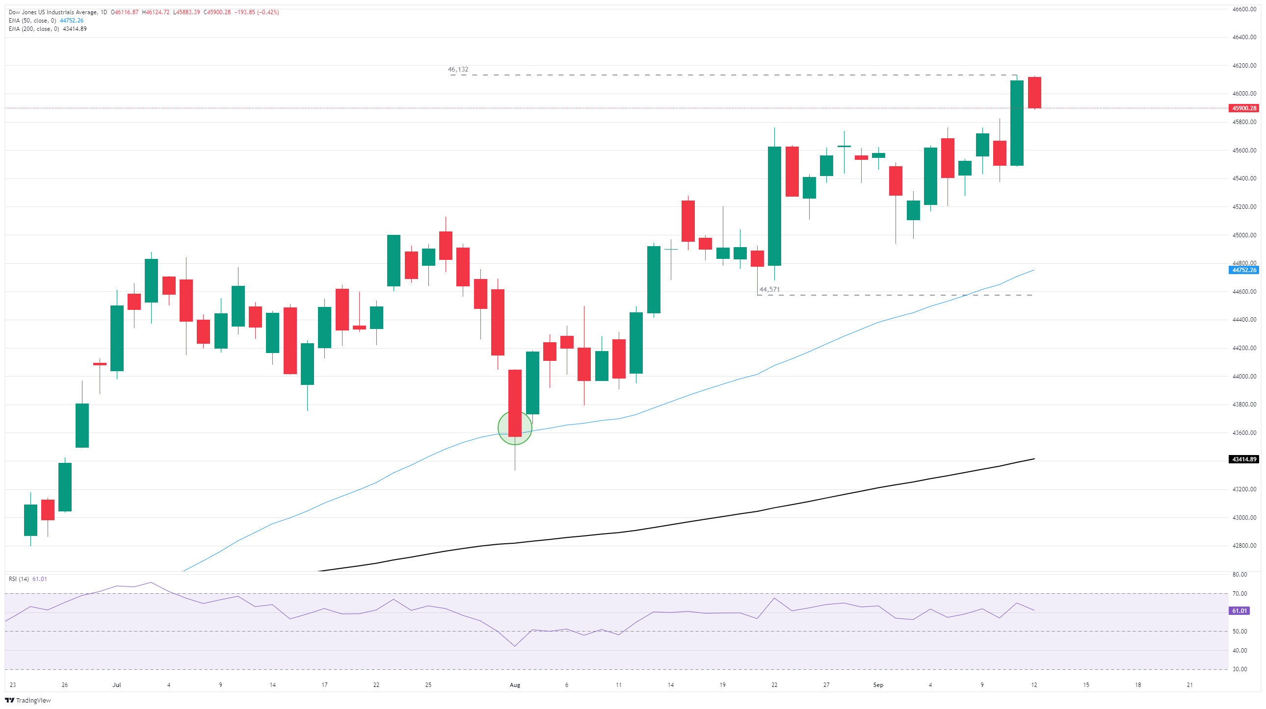 道琼斯工业平均指数(DJIA)在周四削减了涨幅,回落至46000以下,此前在周中交易中创下历史新高。密歇根大学(UoM)9月份消费者信心指数的数据显示,下降速度远快于预期,长期通胀预期也有所上升。