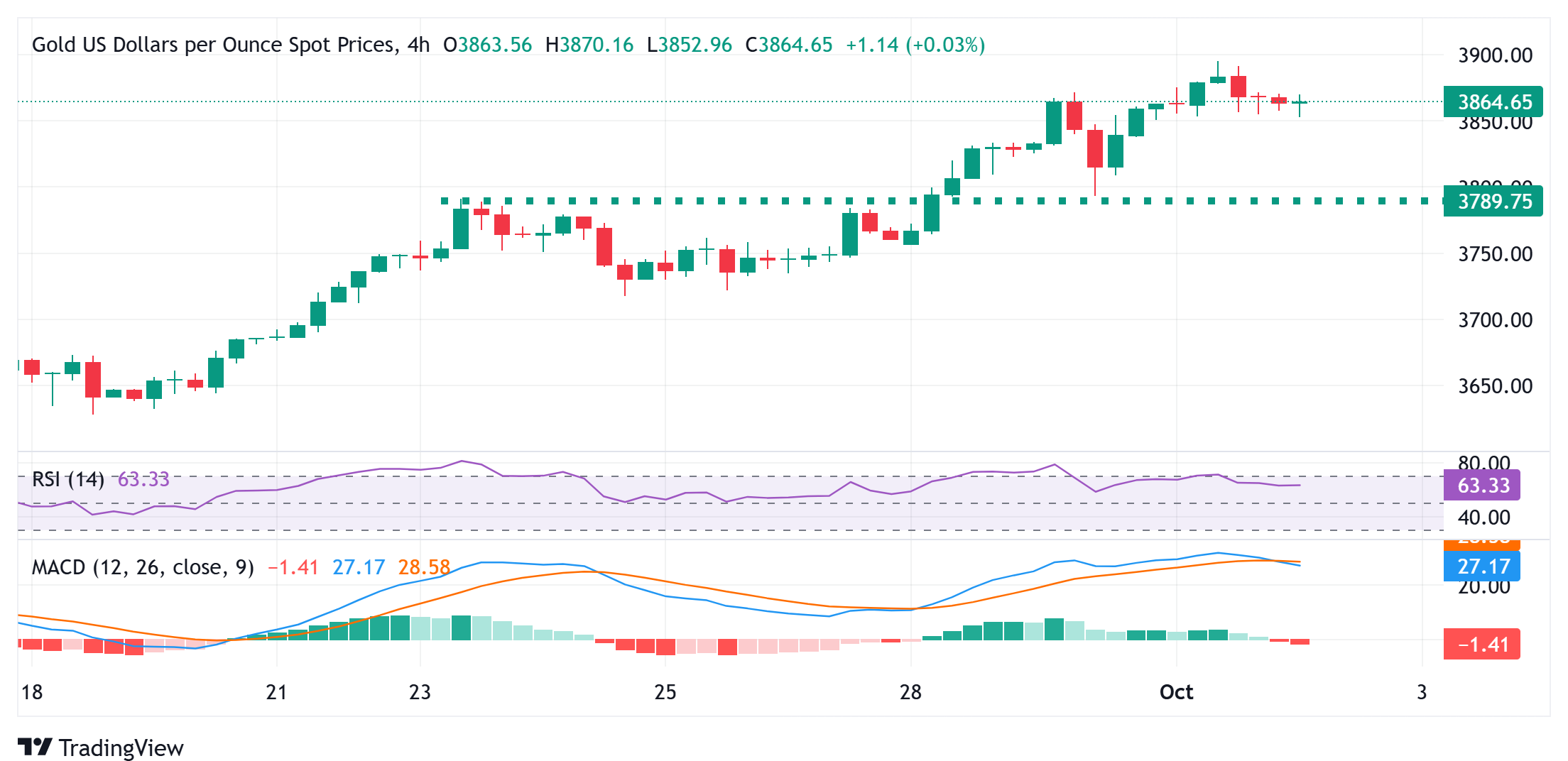 - 美国总统唐纳德·特朗普的共和党未能与反对派民主党就支出法案达成一致。然而,投资者对此反应不大,因预期政府关门对经济的影响有限。这反过来支持了积极的风险情绪,并在周四亚洲时段对黄金价格形成了逆风。