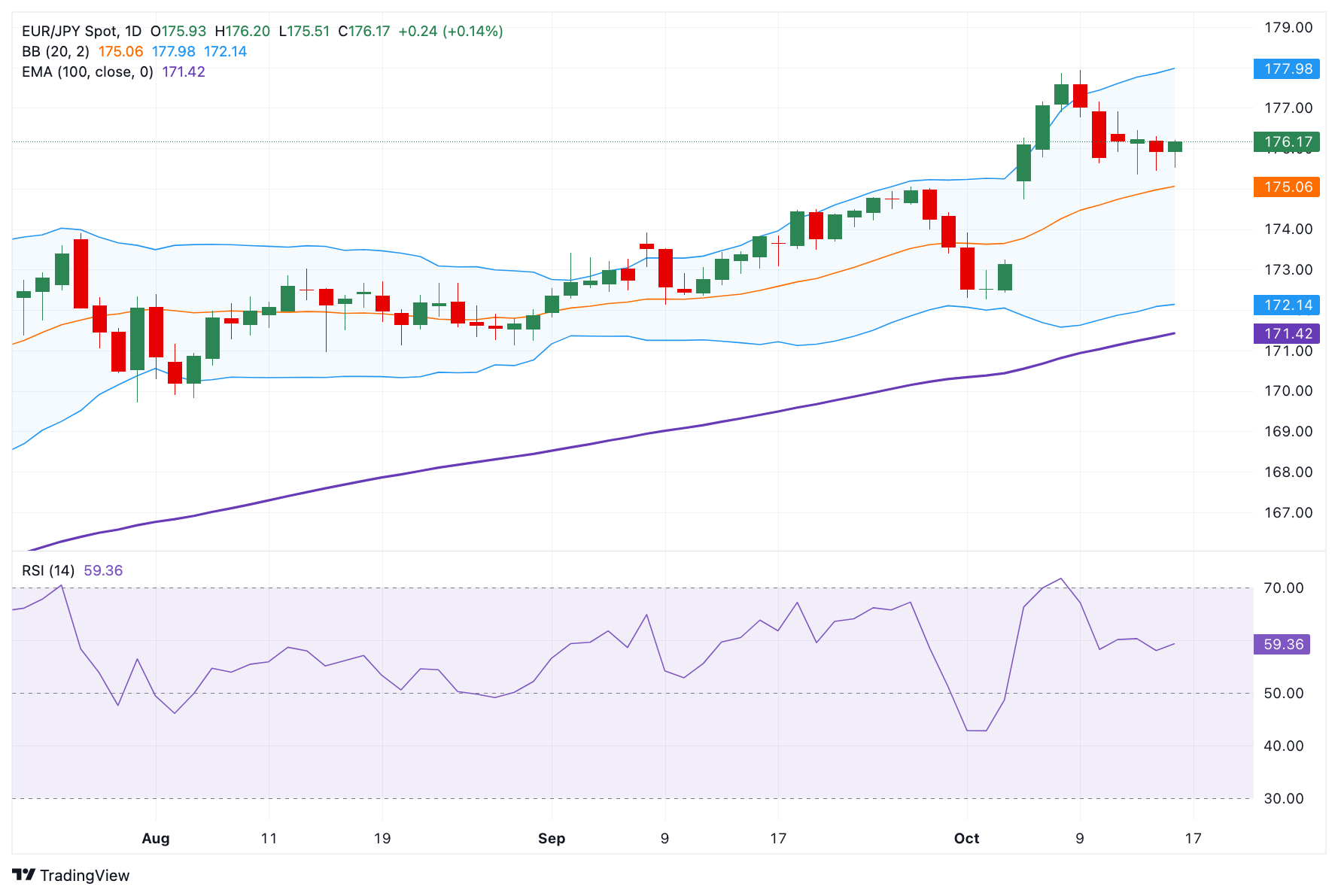 - 欧元/日元在周四欧洲早盘时段强劲上涨至176.15附近。