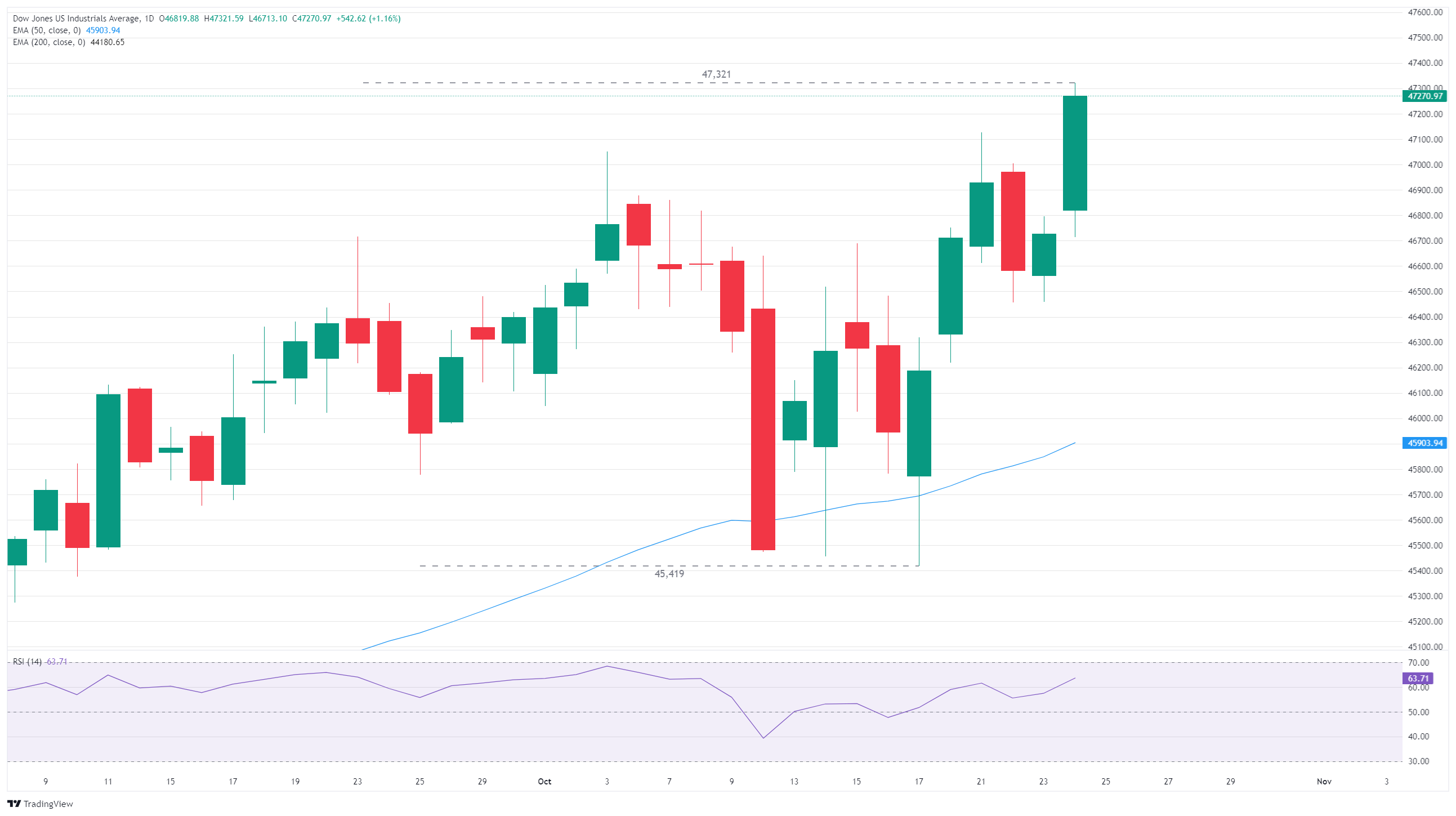 道琼斯工业平均指数(DJIA)在周五创下历史新高,首次日内报价超过47,300。由于美国消费者物价指数(CPI)通胀低于预期,投资者情绪高涨,进一步巩固了对美联储(Fed)进一步降息的希望。