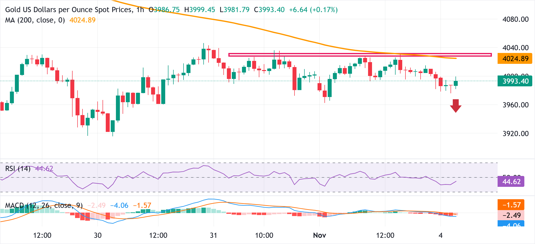 在200小时简单移动平均缐(SMA)附近的隔夜失败和随后的回落為该商品的进一步贬值奠定了基础。然而,日缐图上的中性振盪器使得在前一天的低点3963-3952美元区域下方等待一些后续卖盘是明智的,之后可能加速下滑至3940美元的中间支撑位,进而到达3910-3900美元区域和上周的低点3886美元。
