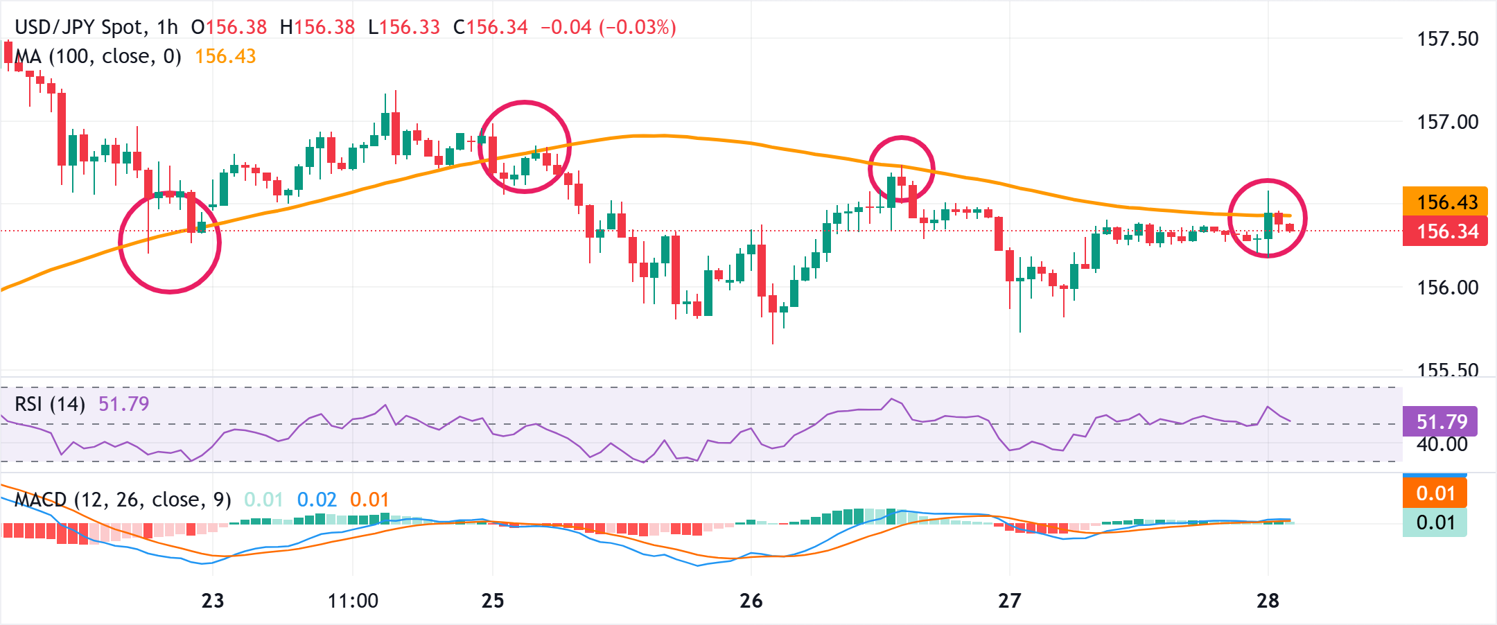 现货价格需要在当前约156.45-156.50区域找到100小时简单移动平均缐(SMA)之上的支撑,以支持进一步上涨的理由。随后的上涨可能使美元/日圆重新夺回157.00关口,并进一步攀升至157.45-157.50的中间阻力位,朝著158.00区域迈进,或上周触及的自1月中旬以来的最高水平。