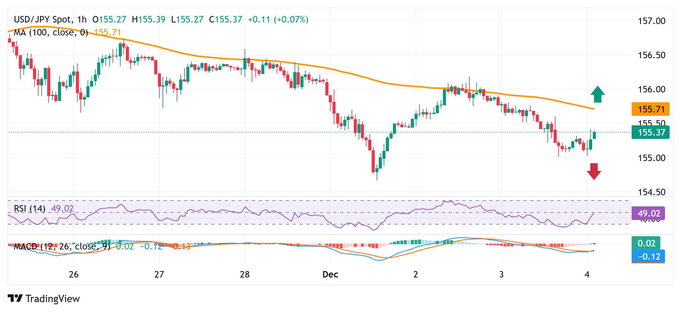 日圆(JPY)在周四亚洲时段与反弹的美元(USD)之间窄幅震盪,侭管短期偏向似乎倾向于看涨交易者。股市普遍积极的情绪被视為对避险日圆的阻力。然而,随著市场对日本央行(BoJ)即将加息的押注上升,日圆的下行空间仍然受到支撑,这一押注得到了行长植田和男本周早些时候的言论的支持。此外,周三的一项调查显示,日本私营部门的产出在11月份连续第八个月录得温和增长,支持进一步的日本央行政策正常化。