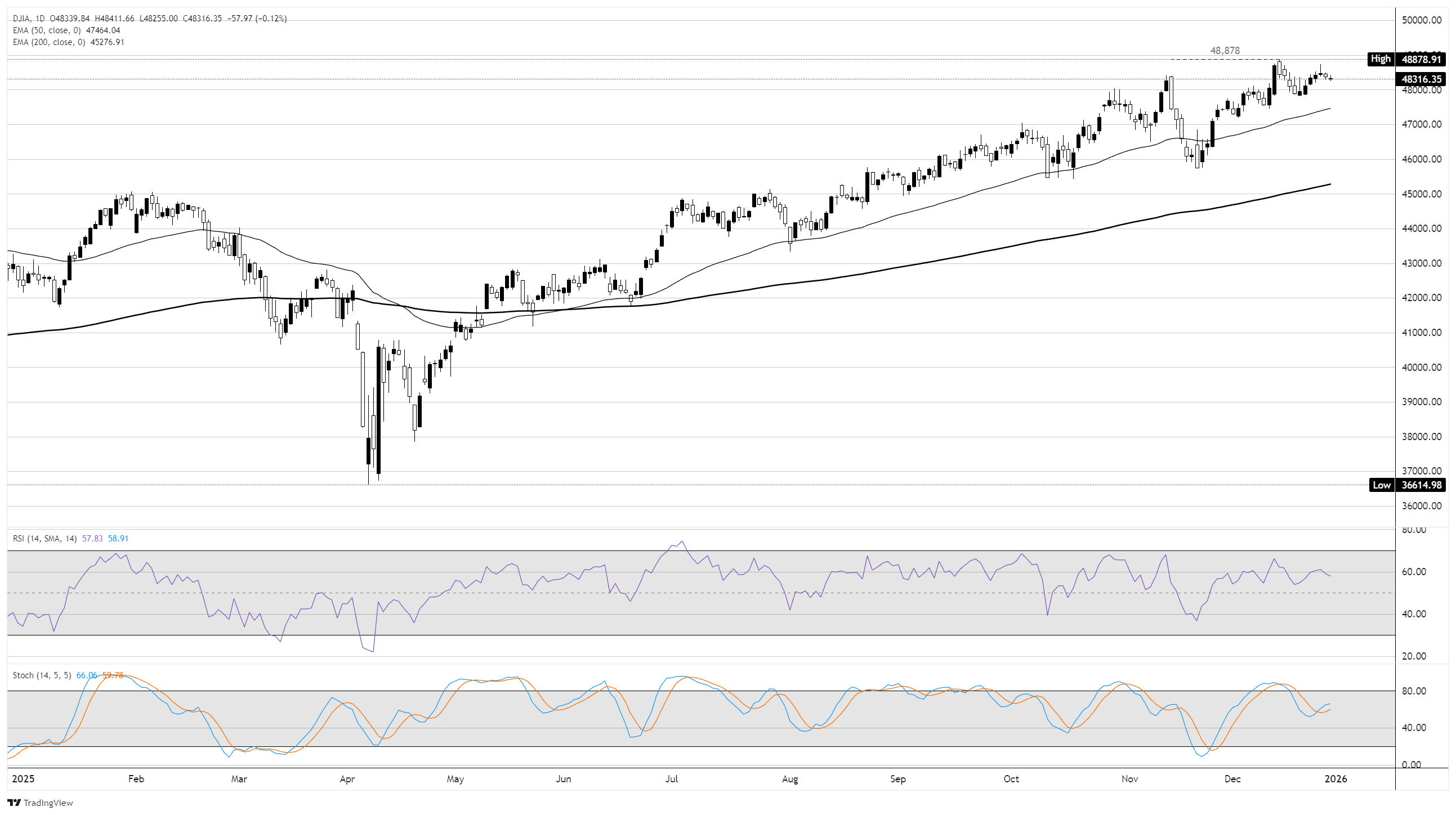 - 道琼斯指数在2025年最后一个交易日与其他指数一起走软。