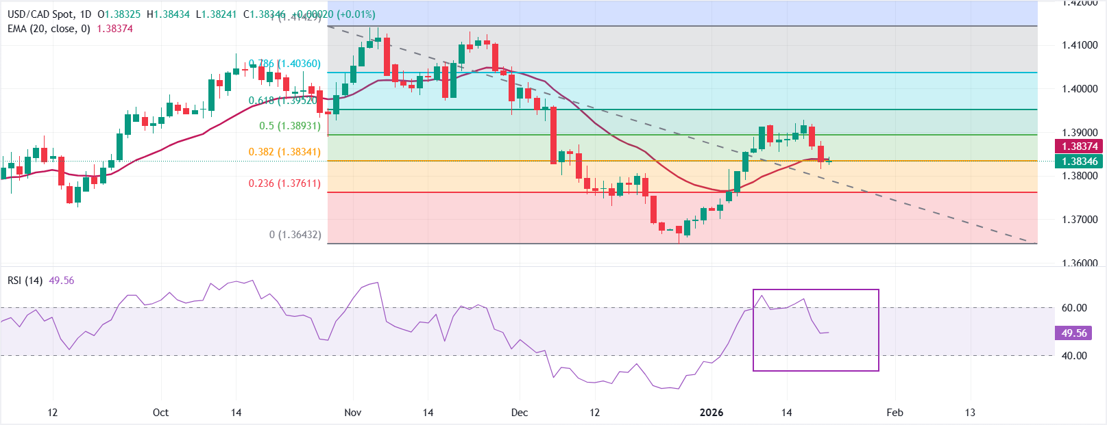 - 美元/加元在特朗普总统在达沃斯世界经济论坛(WEF)演讲前,维持在1.3835附近横盘交易。