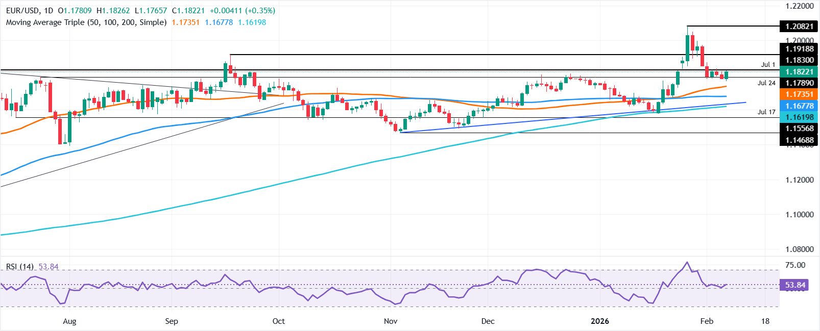 為了实现看涨延续,𧹒家必须重新夺回2月4日的日高1.1837。突破后者将暴露1.1900。另一方面,如果欧元/美元跌破1月20日高点转為支撑位的1.1769,进一步的损失将随之而来。下一个关键支撑位是1.1700,但一旦突破,欧元的下跌可能延续至1.1600。