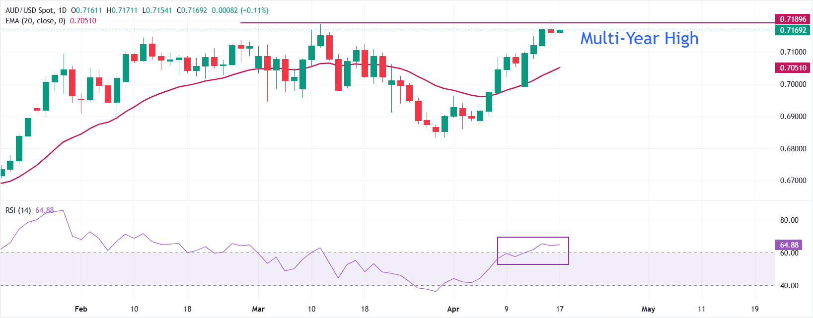发稿时,澳元兑美元报约0.7170,持有建设性的短期偏向,现货价格维持在20日指数移动均缐(EMA)0.7051之上,技术上支撑了从0.68中段区域的最新反弹。