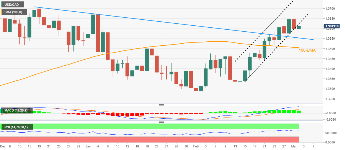 另外,MACD信号看涨且相对强弱指标(14)看涨未处在超卖,使美元/加元对突破前期通道支撑(1.3620附近)抱有希望。