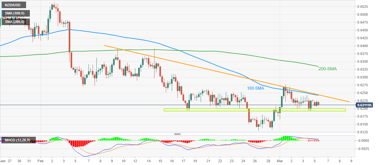 - MACD信号看跌且纽元/美元遇阻100-SMA、一个月阻力汇合处将吸引空头。
