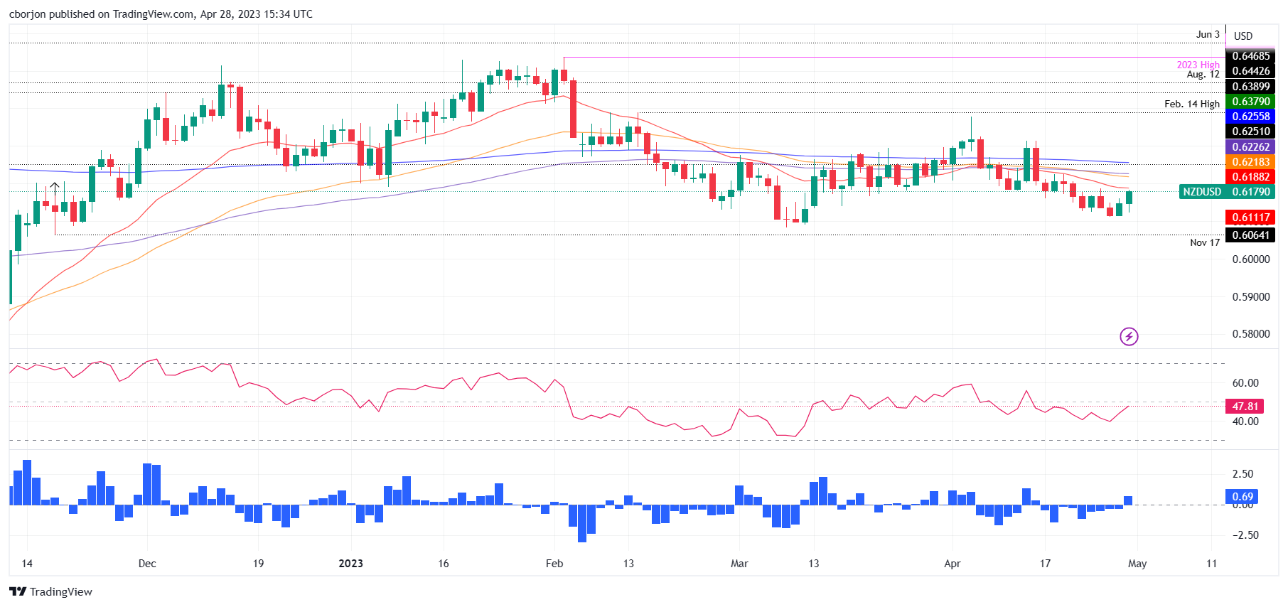 纽元/美元突破前日高点,目标0.6188,侭管美联储的核心PCE支持5月加息