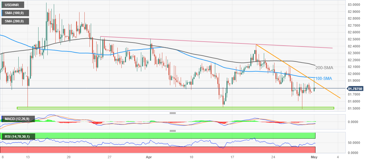 美元/印度卢比价格分析:印度卢比空头整理于相邻阻力81.80附近