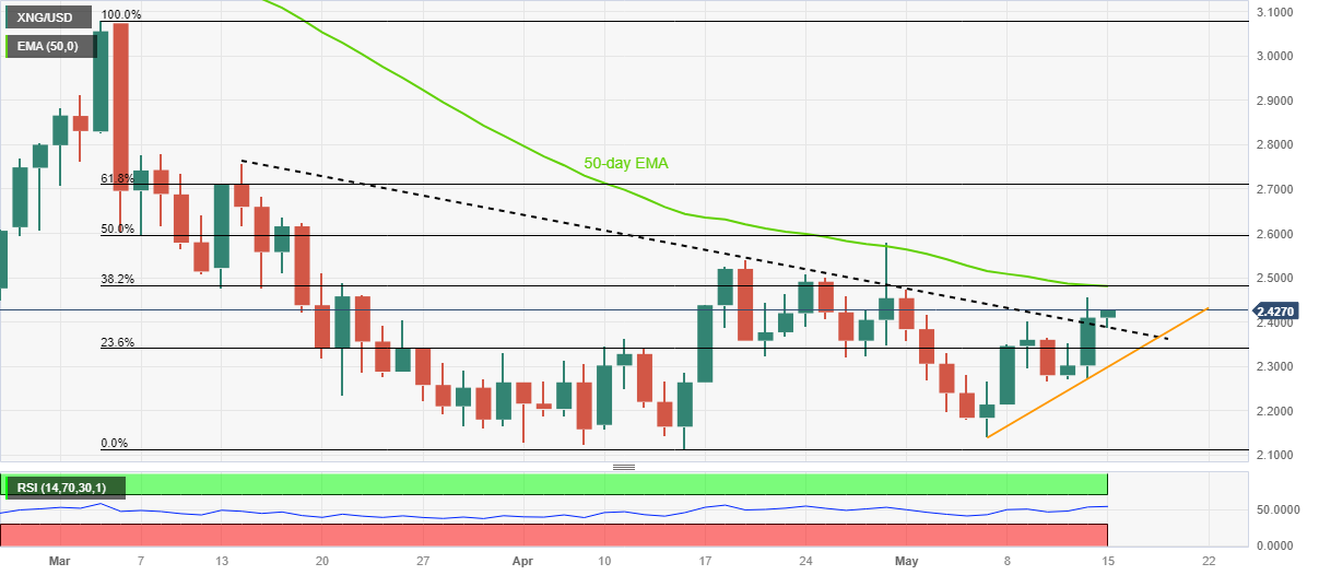 不过50日EMA和3月初至4月中旬期间跌势的38.2%回档位接近2.48美元附近,可能挑𢧐天然气多头。