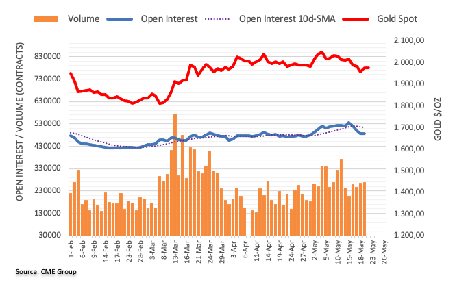 周五金价强势上扬之际未平仓合约继续下降,表明金价暂时不会持续反弹。与此同时,1950美元区域充当强劲支撑。