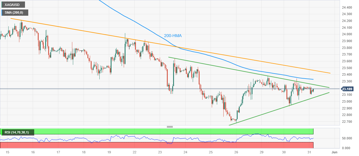 不过,白银持续交投于200小时均缐下方且自5月15日以来的下降趋势缐令空头充满希望。