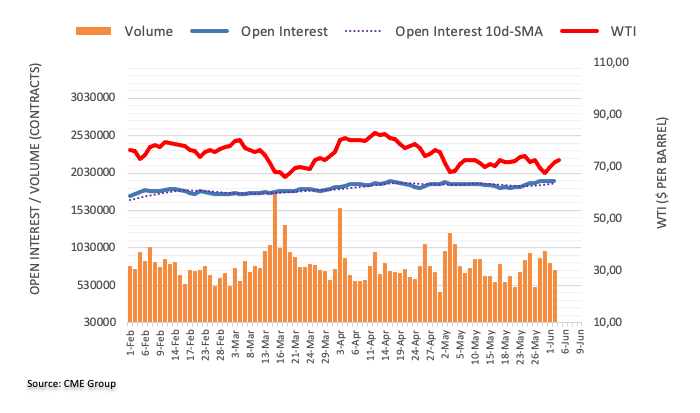 考虑到芝加哥商业期货交易所集团原油期货市场最新数据,周五原油未平仓合约连续第四日增长,此次增长约0.53万份。另一方面,成交量下降约9.04万份合约,扩大前日跌势。