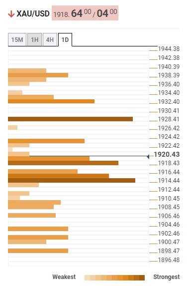 一个月内的38.2%回档位和一日枢纽点在1930美元附近汇合,限制金价短期上行。