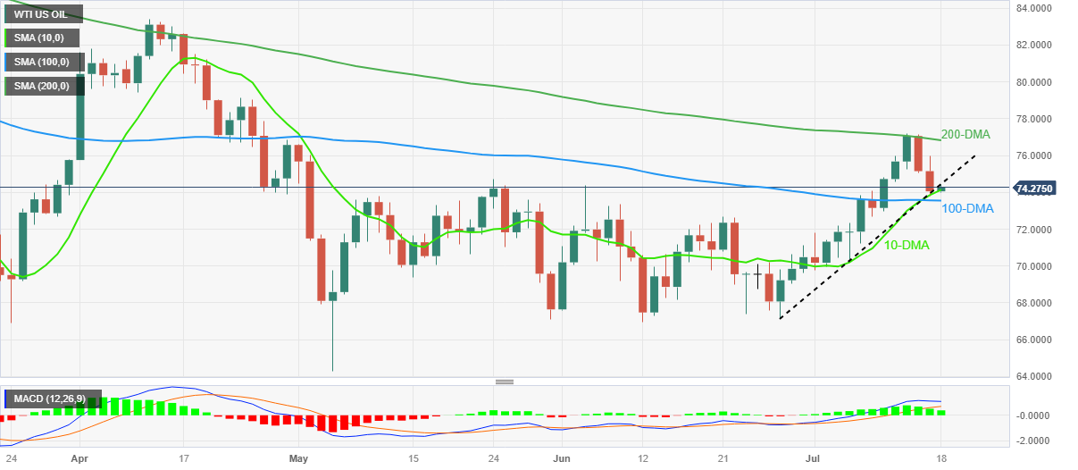 一旦跌破73.50美元,6月高点72.70美元和70美元将受到关注。