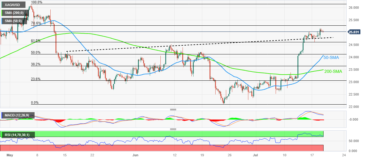 - 低迷的交易时段使得银价巩固了周/月涨幅,但XAG/USD看跌信号消失。