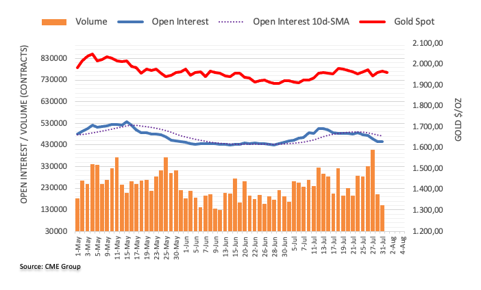 周初金价扩大上周五的涨势,同时未平仓合约和成交量齐跌。金价暂时不会继续反弹,反而可能出现一些修正行情。与此同时,1980美元区域仍限制金价偶尔的上涨尝试。