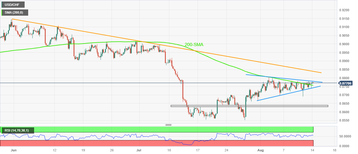 美元/瑞郎价格分析:在三角形内难以进一步突破200SMA均缐,关注0.8840