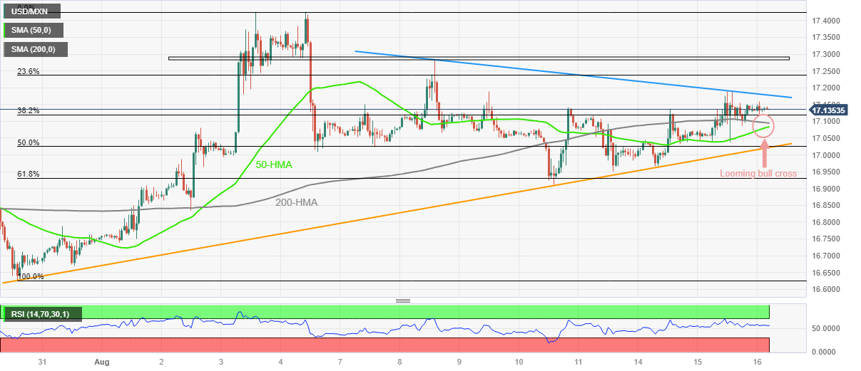 另一方面,200小时均缐和50小时均缐在17.09-08附近限制该货币对短期下行。若跌破17.08的支撑缐,自7月28日以来的上行趋势缐和该货币对在7月底至8月初之间升势的50%回档位在17.00附近聚合,似乎為空头强劲障碍。