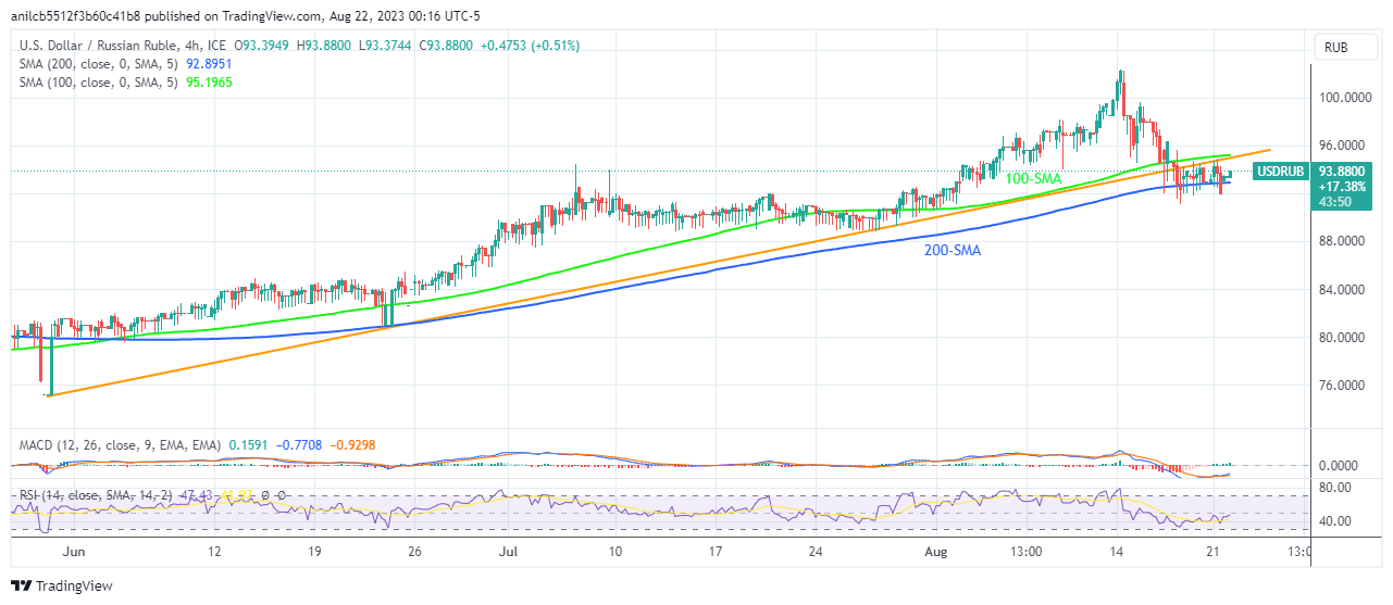 周二欧洲时段,美元/俄罗斯卢布温和上涨至 93.80 附近,即使美元仍处在挣扎当中。在这期间,俄罗斯卢布(RUB)连续第二日下跌,同时中断上周涨势,这主要是受到俄罗斯联邦中央银行意外加息的支撑。值得注意的是,美元/俄罗斯卢布坚挺表现表明市场对俄罗斯卢布的信心不如美元,尤其是在乌克兰地缘政治角力持续不断以及近期油价回落的情况下。