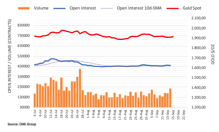 周四金价反弹脱离1900美元关键区域,同时未平仓合约萎缩,暗示金价暂时不会更持续性反弹。上涨方面,下一个阻力在关键的200日SMA均缐,该均缐今日在1922美元附近。